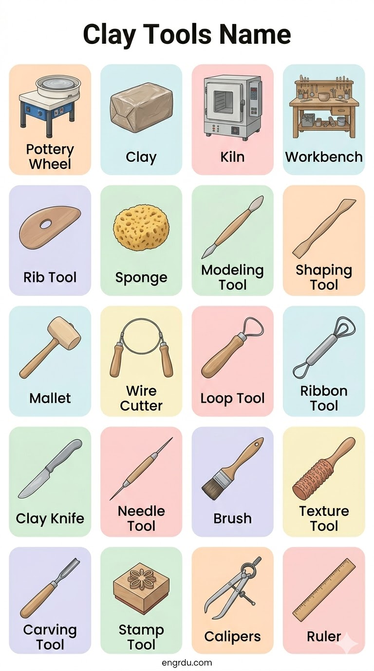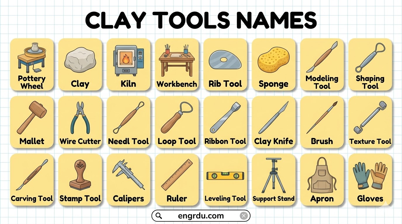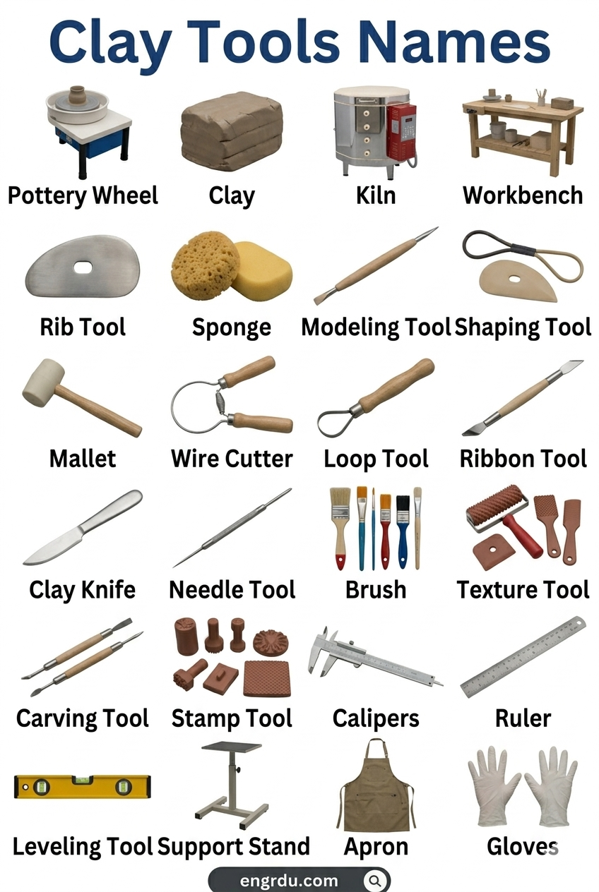 Learning clay tools names helps you understand art work and communicate better in English. These words are useful in classrooms, workshops, and creative projects. Practice these terms regularly to build strong vocabulary and improve your English skills step by step.
