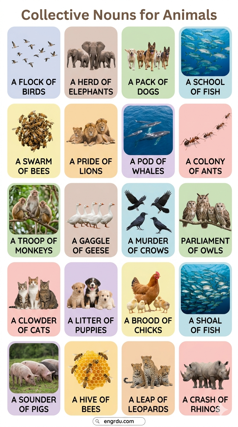 Collective nouns for animals are an important part of English vocabulary. They help you speak and write more naturally while improving your understanding of real-world English. By learning and practicing these words step by step, you can build strong communication skills and sound more fluent in English.