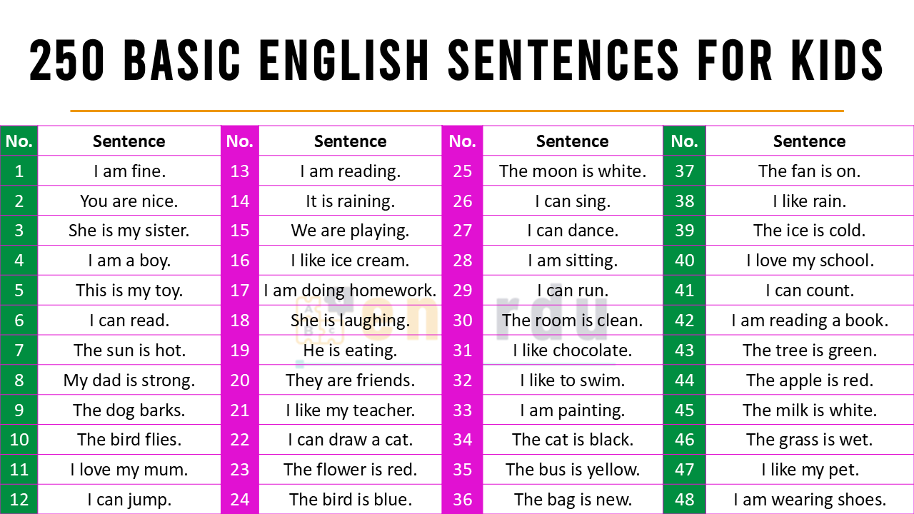 Simple sentences help children learn basic grammar and communicate easily in English.
