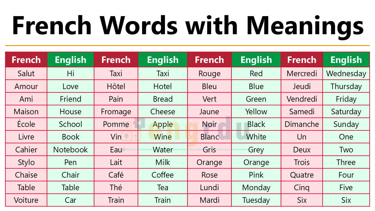 100+ French Words with Meanings