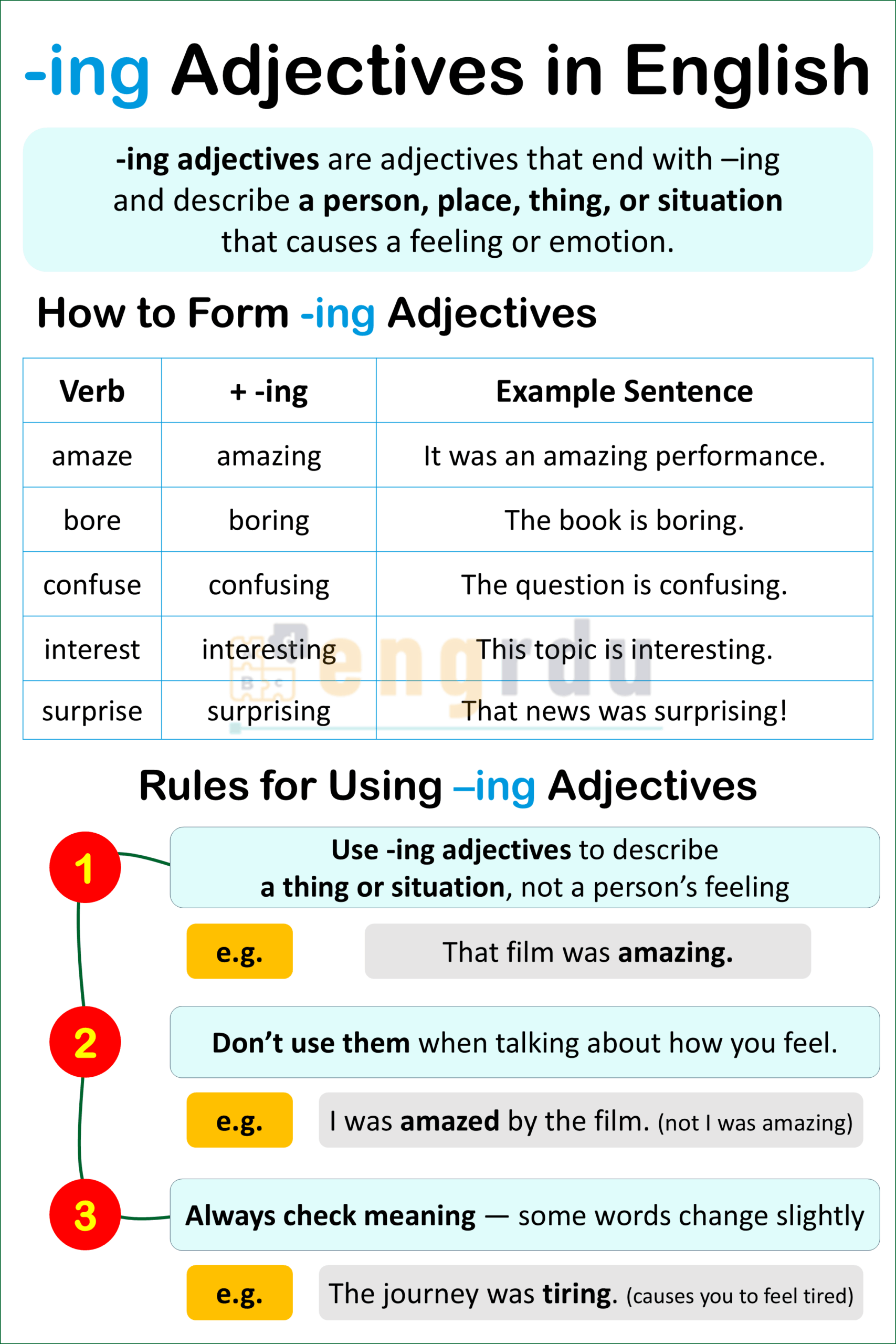 Rules for Using -ing Adjectives