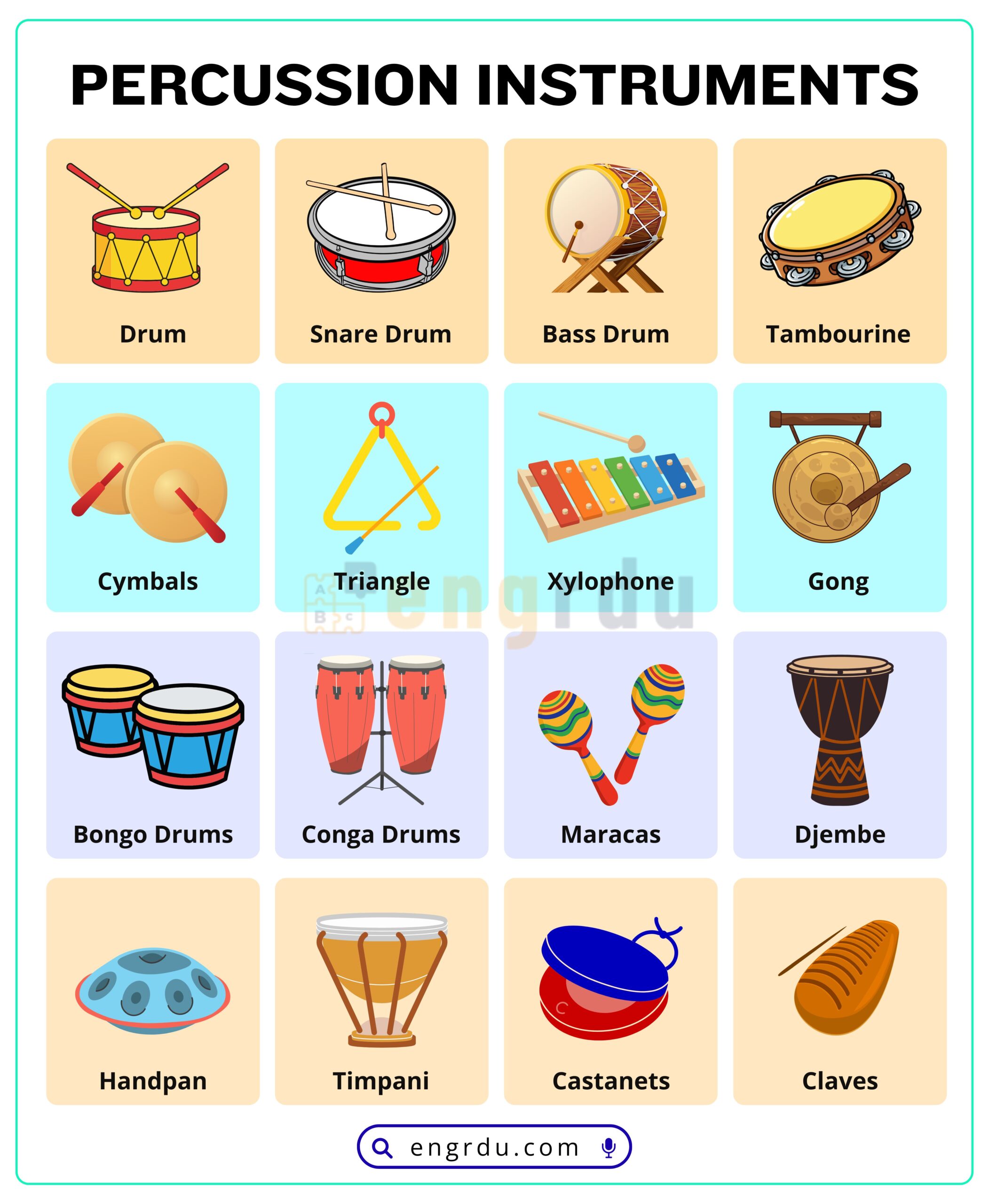 Percussion instruments are fun to learn and easy to remember with practice. By studying this vocabulary, you can talk about music confidently, read music articles, and understand lessons better.