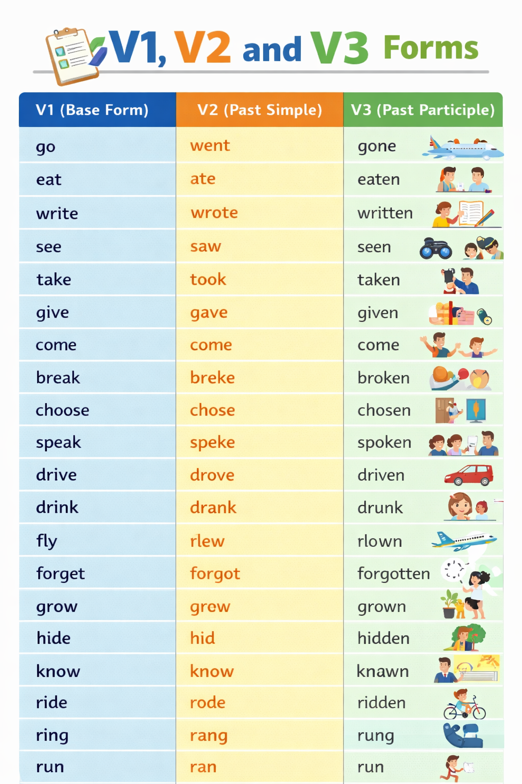 | fly | flew | flown |